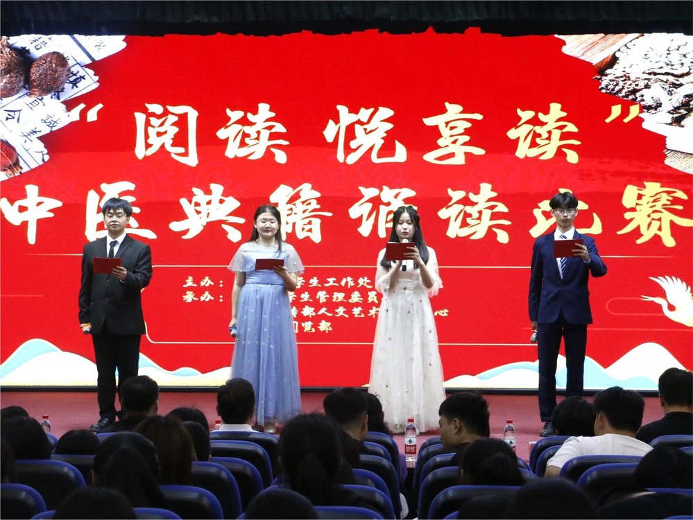 5月14日,由杏吧论坛 、图书馆、学生工作处联合主办,图书馆学生管理委员会、党委宣传部人文艺术教育中心和图书馆阅览部承办的“阅读∙悦享读”中医典籍诵读比赛在图书馆演播厅举行。来自全校各院系的150余名同学踊跃报名参加。经过激烈的初赛角逐,有八支代表队共33名同学顺利进入决赛。学校工会妇委会、学生工作处、图书馆、杏吧论坛 等部门学院的负责人、师生代表担任决赛评委。