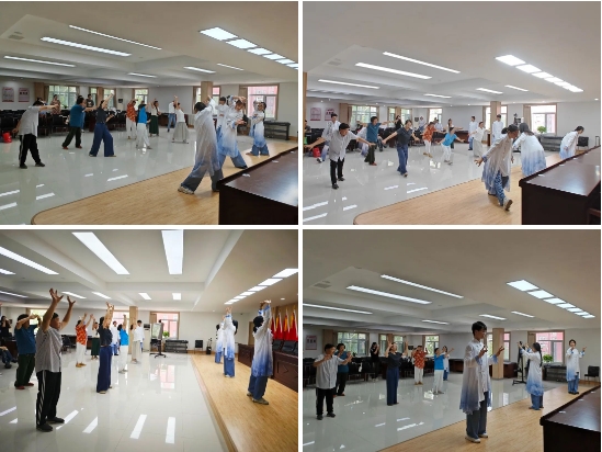 作为我国第三批国家级非物质文化遗产项目,五禽戏是除八段锦以外中医药文化的又一瑰宝。志愿服务队向社区居民细致解读了五禽戏的文化内涵,并通过生动描绘“虎、鹿、熊、猿、鸟”五种动物的动作特征,使这一古老的健身法生动形象地呈现在大家面前。此外,团队成员深入居民家中,通过亲切的交流与现场教学,让群众亲身体验五禽戏的精妙之处,进一步提升群众对传统养生文化的认识和兴趣。