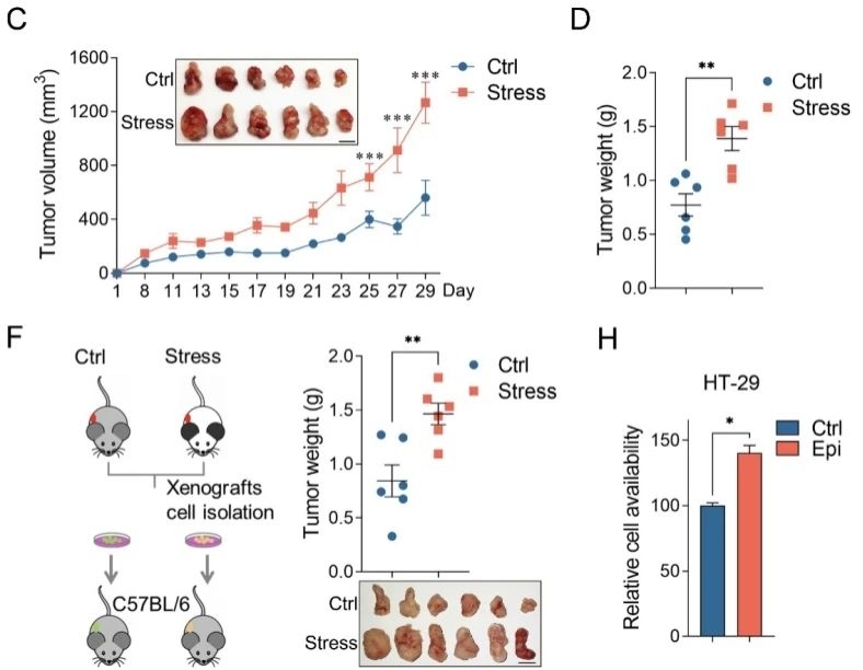 本项工作从肿瘤代谢重编程的角度阐述了慢性情志应激与大肠癌进展的关系,提示靶向糖酵解及β2-AR信号通路可以作为情志应激相关大肠癌治疗的手段,为大肠癌的临床治疗提供了新的思路,具有重要的临床应用价值。