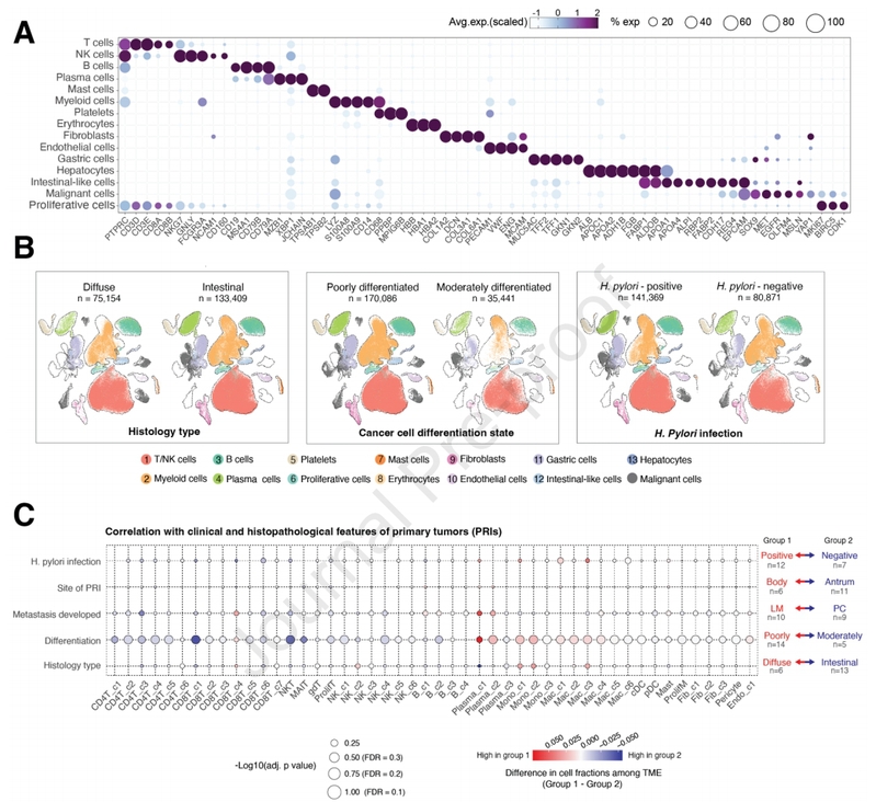 先前的单细胞研究主要集中于局部肿瘤,很少或没有包括GAC来源的转移,因此我们对转移性GAC的理解相对有限。在最近的一项研究中,研究人员对来自20名GAC患者的PC腹水细胞进行了单细胞分析,揭示了异质性的癌细胞谱系状态,并将癌细胞状态120的组成与肿瘤内异质性(ITH)和生存结果联系起来。然而,该研究没有包括任何配对原发肿瘤,仅关注PC,并且大多数患者已经接受了多种治疗。有必要对原发性GACs与PC和/或LM配对进行全面的鉴定,特别是在治疗-naïve患者中。