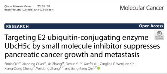 泛素-蛋白酶体系统主要由泛素激活酶(E1)、泛素结合酶(E2)、泛素连接酶(E3)、去泛素化酶等一系列关键酶调控底物蛋白的翻译后泛素化水平进而控制蛋白质稳定性,在恶性肿瘤等重大疾病的发生发展中发挥关键作用。已有研究表明,靶向E2泛素结合酶是开发抗癌药物的潜在策略。
