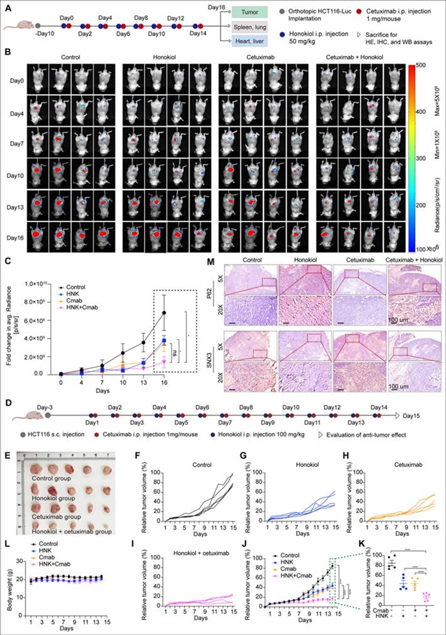 6、和厚朴酚增强西妥昔单抗在KRASG13D突变CRC模型中的治疗效果